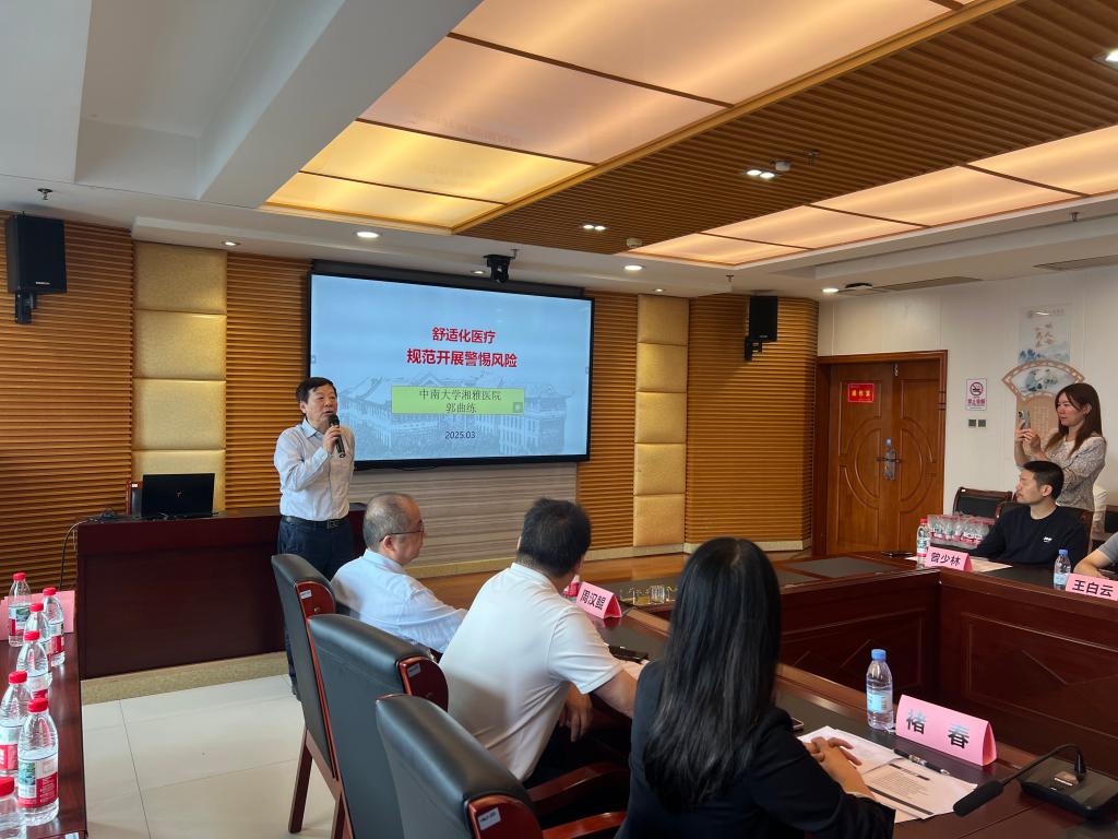 随后,学术讲座环节有序展开。湖南省麻醉质控中心主任郭曲练教授以“舒适化医疗应规范开展警惕风险”为题,结合丰富的临床案例,系统阐述了舒适化医疗在实施过程中需关注的关键环节与潜在风险,为基层医务人员提供了宝贵的实践指导。
