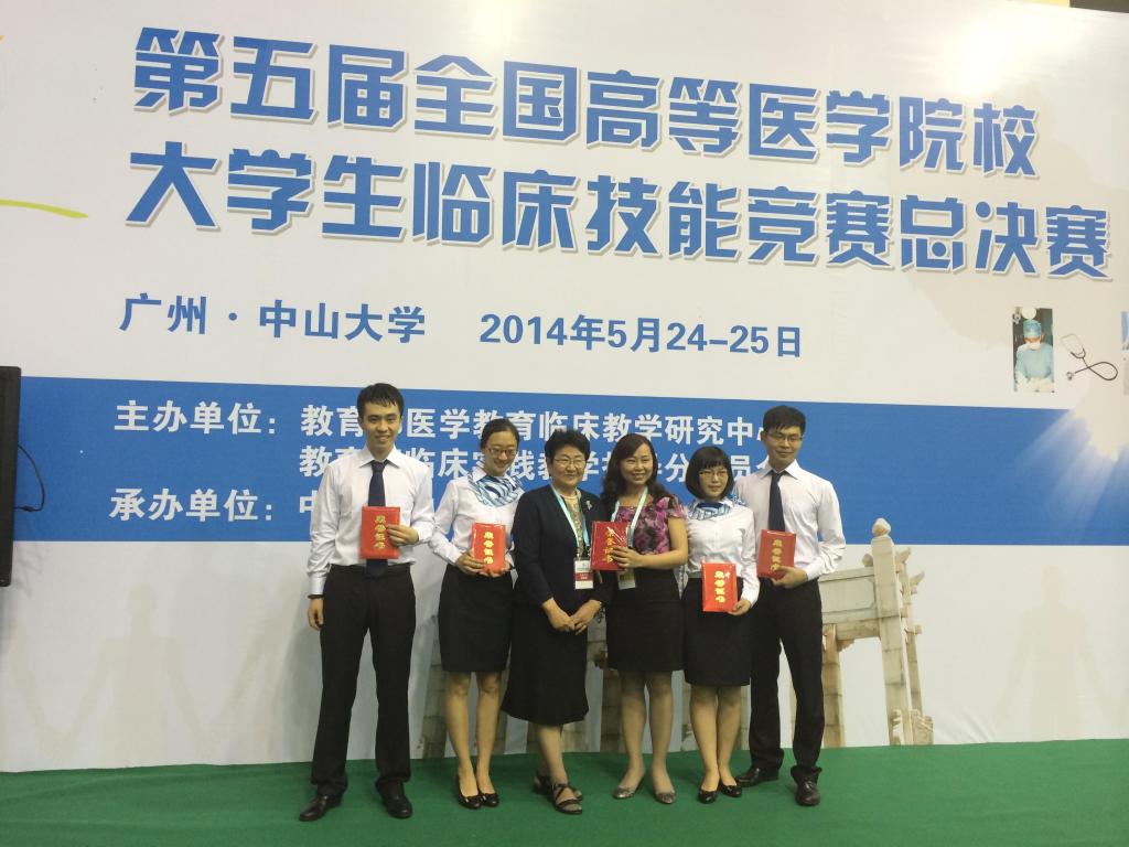 相关链接:全国高等医学院校大学生临床技能竞赛是目前教育部组织的医学类唯一的学科竞赛,目的是进一步推动临床实践教学改革,创新实践教学体系,提升医学生创新能力、实践能力和团队合作意识,全面提高医学生综合素质和人才培养质量,从2010年开始,每年一届。首届我校获得优秀奖、第二届获一等奖、随后我校连续获得了第三、四竞赛总决赛的特等奖,第五届总决赛特等奖的获得使我校实现了该项赛事上的三连冠。此前我校还曾成功承办了第三届全国高等医学院校华中分赛区竞赛、第四届全国高等医学院校总决赛。
