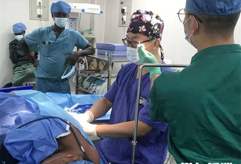 手术决定定下后,却发生了意外情况。医疗队唯一的麻醉医生杨勇副教授感染了疟疾,手术这天,杨勇正躺在病床上经历冷热交替的煎熬。正当大家一筹莫展时,杨勇走出病房,拔掉刚刚打完的吊针说:“开台吧!” 就这样,一边杨勇医生冒着满头大汗打着麻醉,守护着产妇,一边李书萍和陈鸰医生迅速开始手术。同术前担忧的一样,由于多次剖宫产手术,腹腔多处粘连,妇产和外科同时手术,在多名医护人员的努力下,手术顺利完成,母子平安的消息传出,呼勒玛图的丈夫感激得流下了喜悦的眼泪。