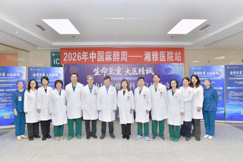 3月28日至4月2日,中南大学湘雅医院麻醉手术部在医院门诊举行了主题为“生命至重,大医精诚——护生命高质量发展,助健康舒适同行”的2026年中国麻醉周科普宣传活动。中国麻醉周是由中华医学会麻醉学分会、中国医师协会麻醉学医师分会联合发起的全国性科普活动,每年3月最后一周举行,旨在提升公众对麻醉学科和围术期安全的认知。