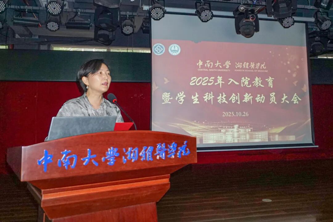 2025年10月26日下午15:00,中南大学湘雅医学院2025年入院教育大会在中南大学杏林校区学生活动中心隆重举行。中南大学常务副校长、湘雅医学院院长陈翔教授,中南大学副校长黎志宏教授,中南大学湘雅医学院领导班子,麻醉学系王锷主任、精卫系及检验系领导出席本次大会。临八2023级以及临五、麻醉、精卫、检验专业2024级全体学生到场参会。本次大会由中南大学湘雅医学院常务副院长武明花教授主持。